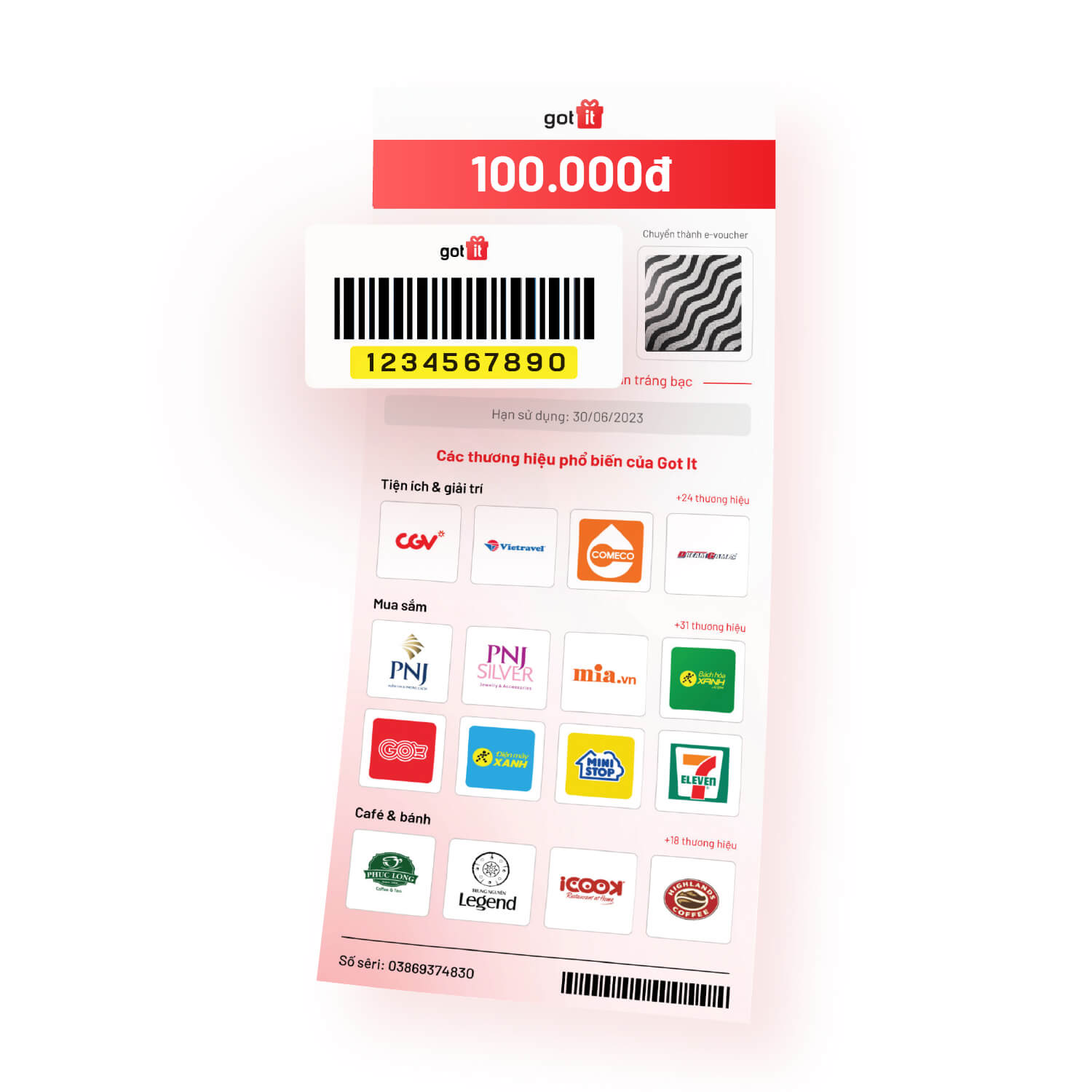 Đưa mã thẻ quà tặng cho nhân viên thu ngân khi thanh toán tại các cửa hàng của thương hiệu đối tác.